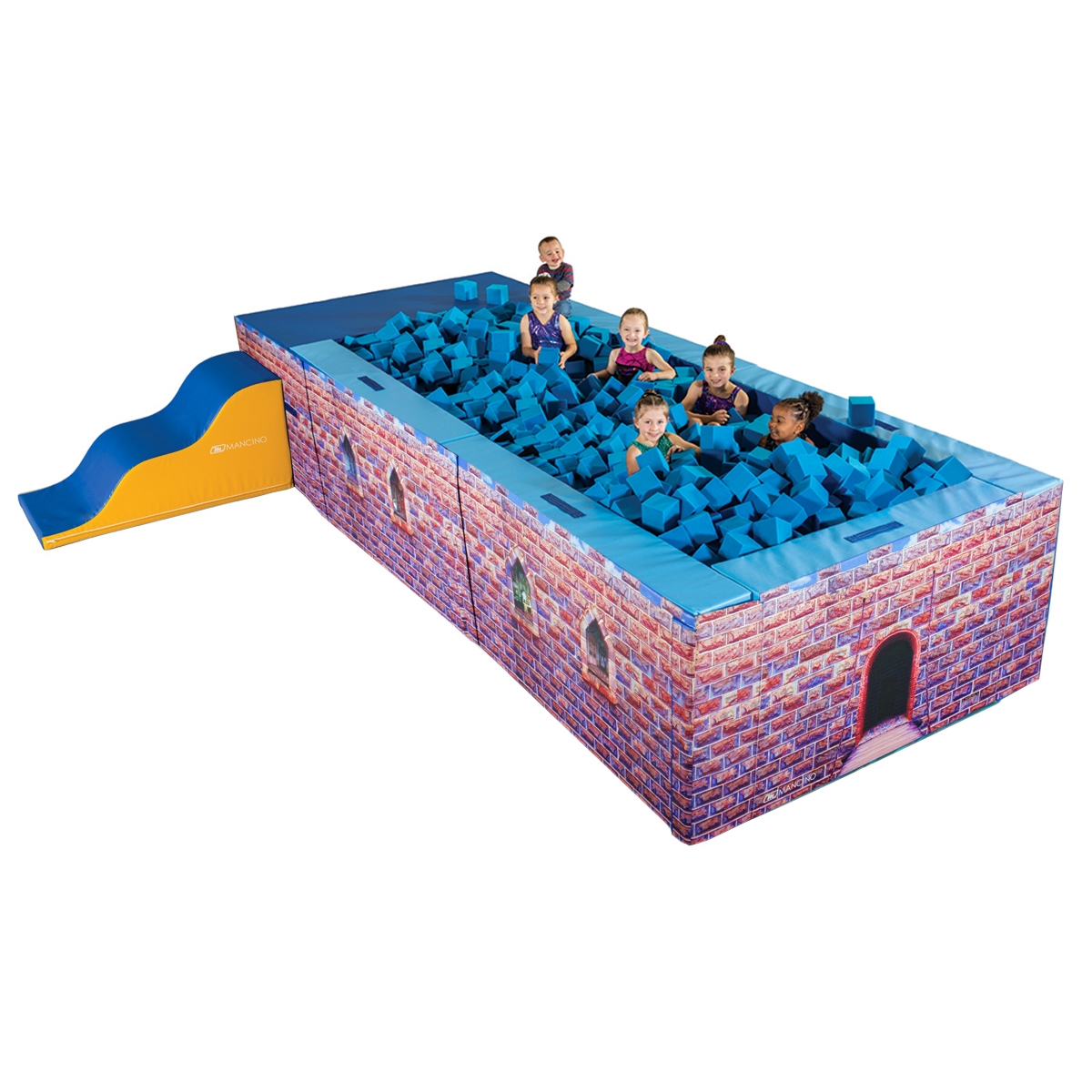 Jazz up your preschool activity area with a foam pit! This gymnastics pit has walls that lock to one another with an inside and outside hook and loop fastening system. Please call for customized sizing and graphics. (Foam pit cubes sold separately. 4” cubes recommended)