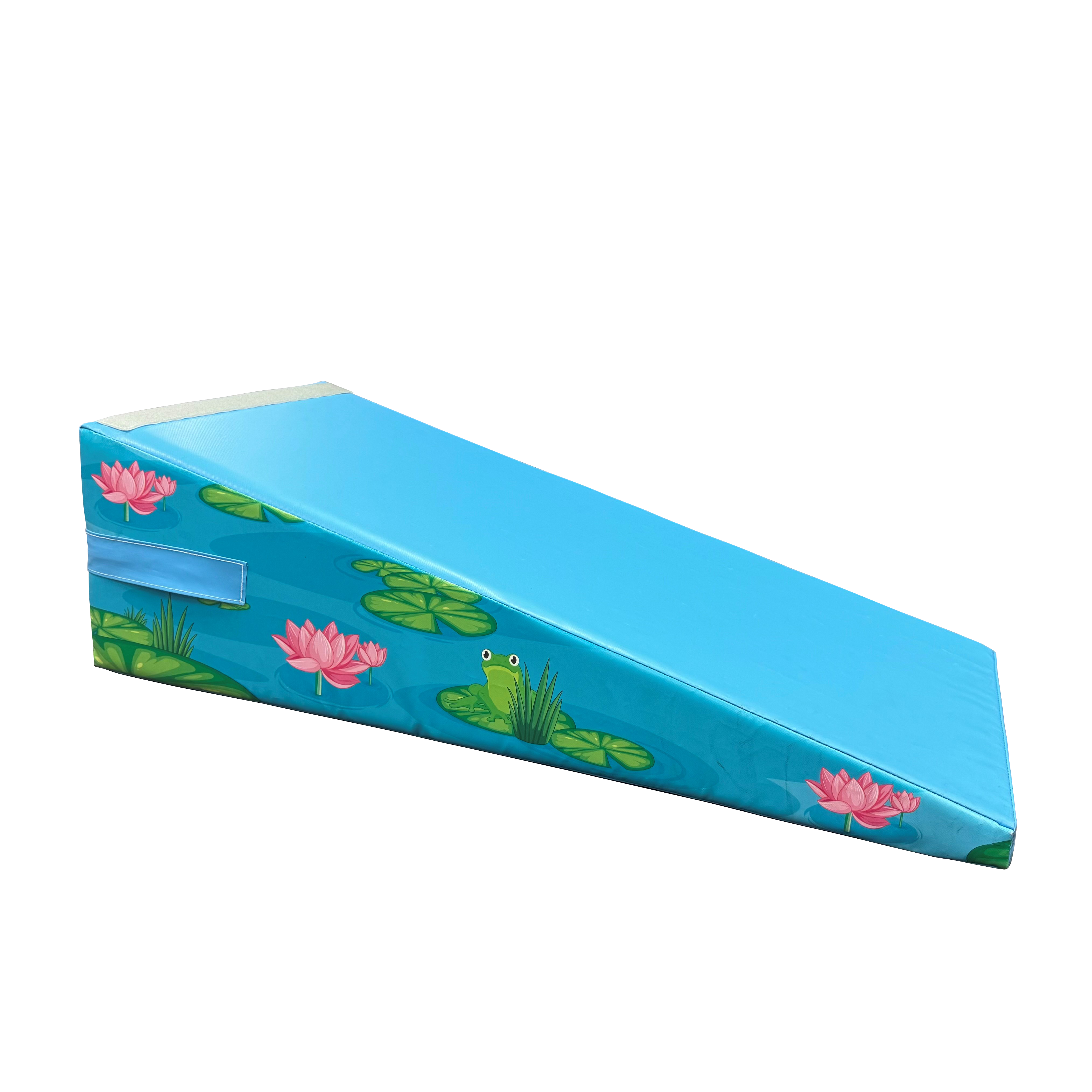 24″ Incline Mat & Soft Step 2 – Use separately, or using the hook and loop system, together to create a ramp with built-in stairs, perfect for climbing, rolling, and skill-building drills. The colorful lily pad and frog design adds a playful touch.
