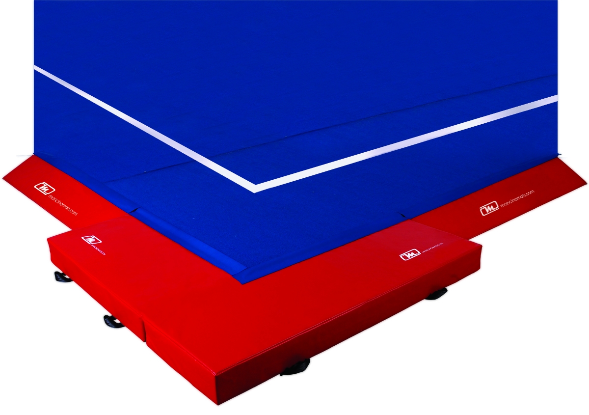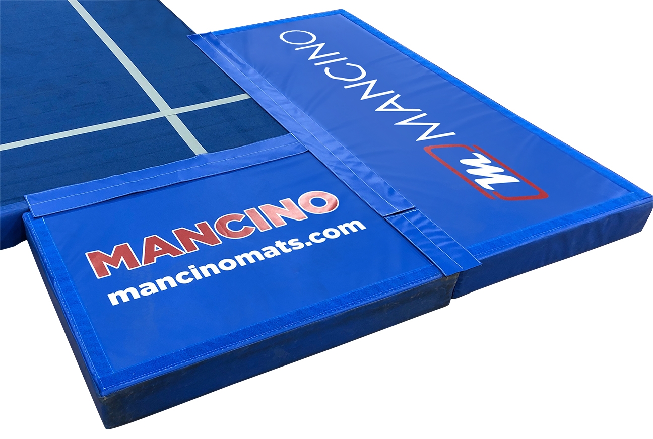 The Mancino corner block system provides the extra protection athletes require. Constructed with urethane foam and a top layer of crosslinked polyethylene foam. Mancino corner blocks fit flush to your floor, for a smooth transition from carpet to blocks. When assembled, the blocks extend out from the floor 3’ and 4’ down each edge of the floor. When ordering, specify the height of your floor from the ground to the top of the carpet. Two blocks per corner set.